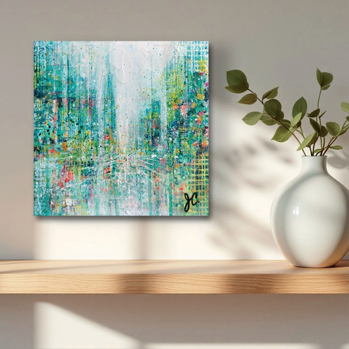Note : les proportions de l’œuvre dans la simulation de décor présentée ci-dessus sont approximatives. Il recommandé de vous référer aux mesures de l’œuvre pour vous assurer que ça convient. Pour une simulation précise, vous pouvez recourir à mon service de visualisation.