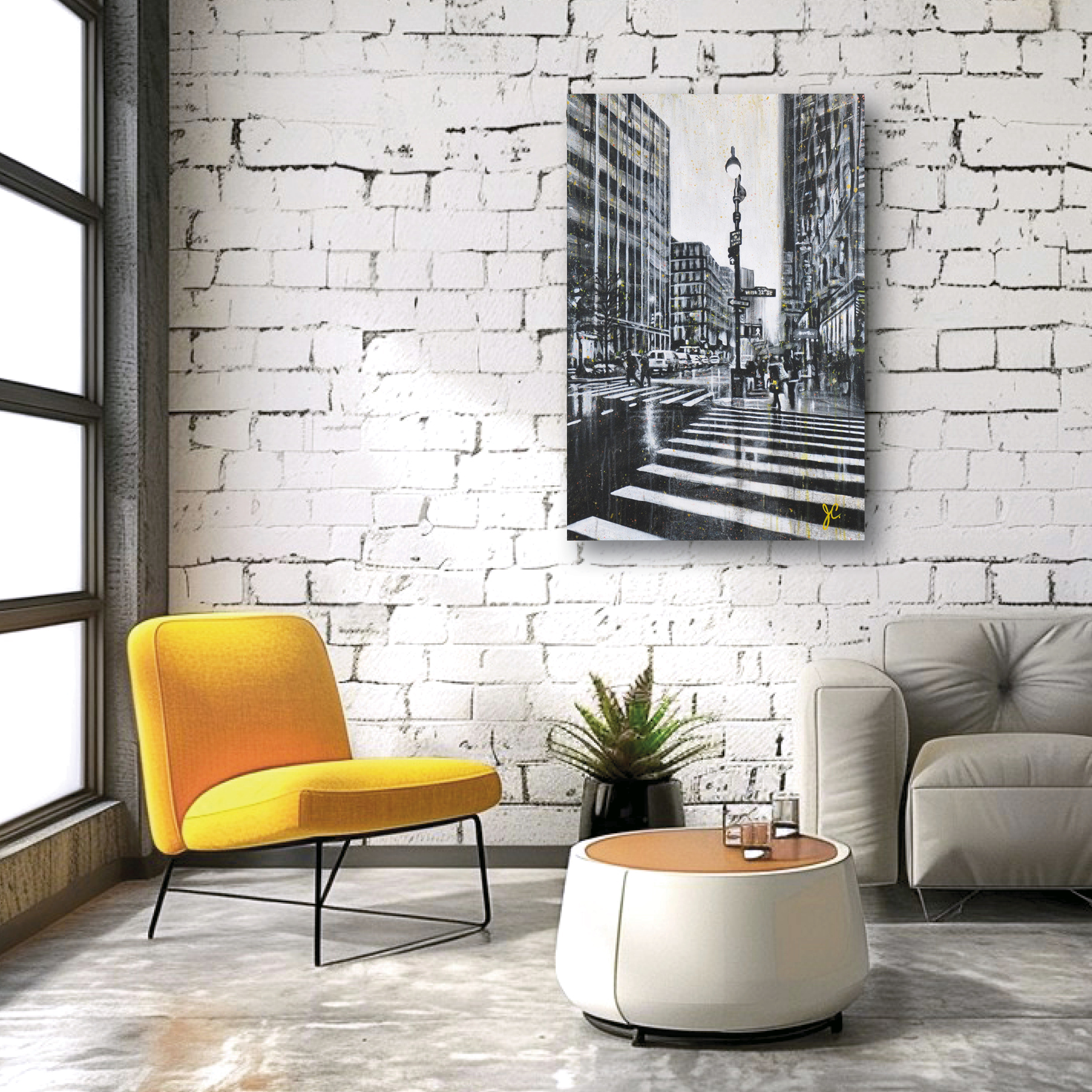 Note : les proportions de l’œuvre dans la simulation de décor présentée ci-dessus sont approximatives. Il recommandé de vous référer aux mesures de l’œuvre pour vous assurer que ça convient. Pour une simulation précise, vous pouvez recourir à mon service de visualisation.