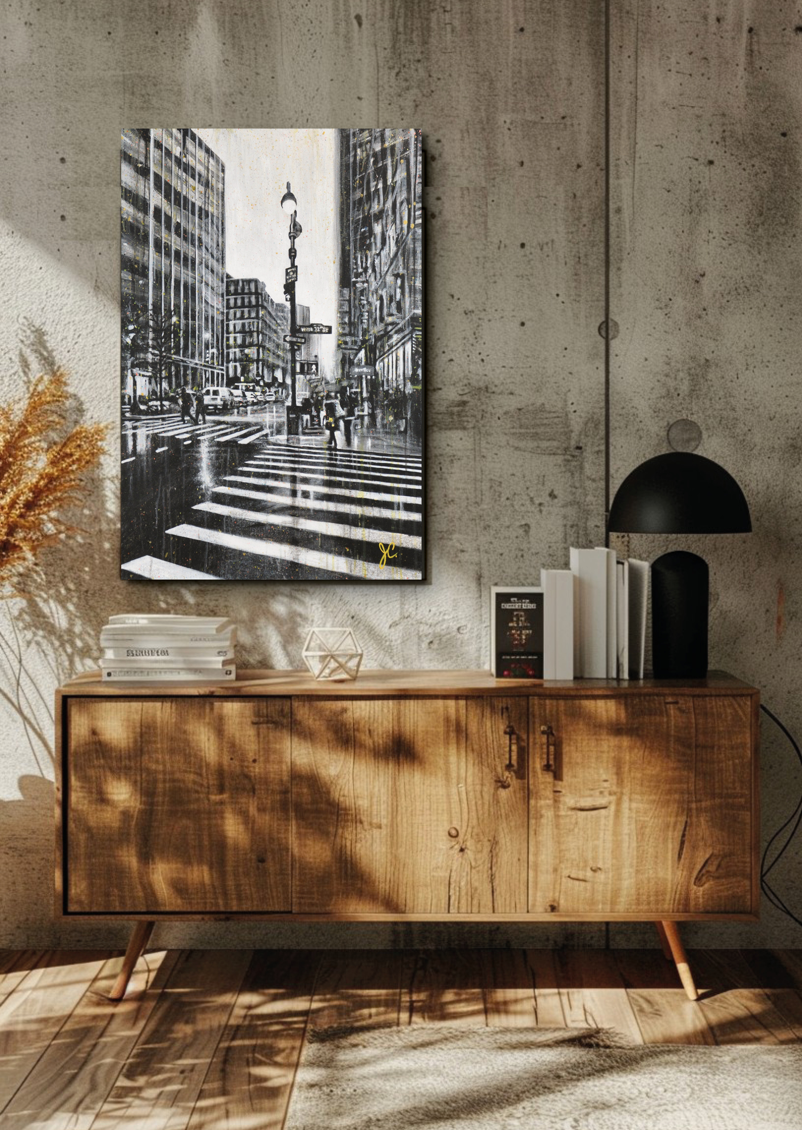 Note : les proportions de l’œuvre dans la simulation de décor présentée ci-dessus sont approximatives. Il est recommandé de vous référer aux mesures de l’œuvre pour vous assurer que ça convient. Pour une simulation précise, vous pouvez recourir à mon service de visualisation.