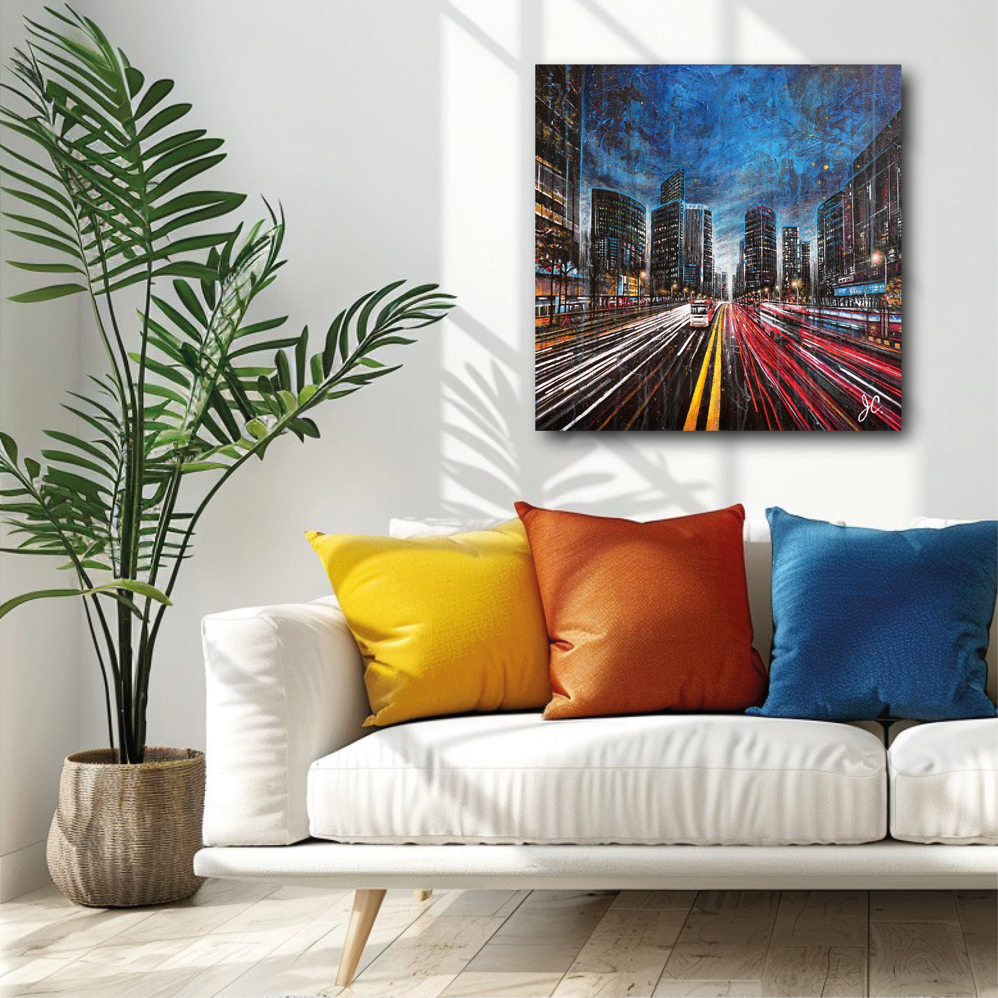 Vous hésitez à acheter un de mes tableaux, car vous n’êtes pas certain de celui qui irait le mieux dans votre décor? J’offre le service de visualisation pour mes clients qui souhaitent avoir un aperçu des œuvres dans leur espace.